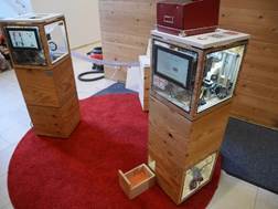 Robomat: Binäre Datenübertragung durch Tischtennisbälle: Kinder konnten ihren eigenen kleinen Holzroboter selbst designen und durch den KET Robomat produzieren lassen. Die Informationen, wie der Roboter aussehen wird, wurde mit Bällen zur Fertigung übertragen.