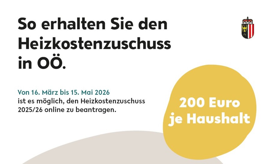 Das Land Oberösterreich gewährt auch für die Heizperiode 2025/26 einen Heizkostenzuschuss an sozial bedürftige Personen in Höhe von 200 Euro pro Haushalt.