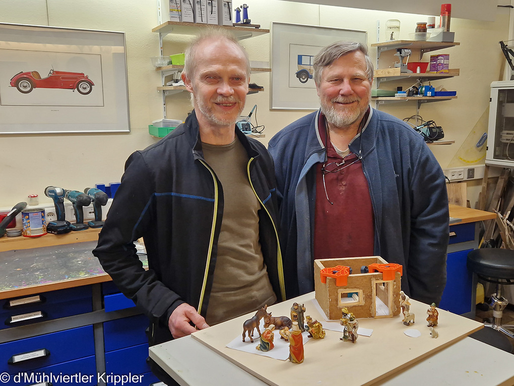 Beim Bau wird er ehrenamtlich von Krippenbaumeister Michael Thomasberger unterstützt, der ihm mit Erfahrung, Geduld und viel Einfühlungsvermögen zur Seite steht.