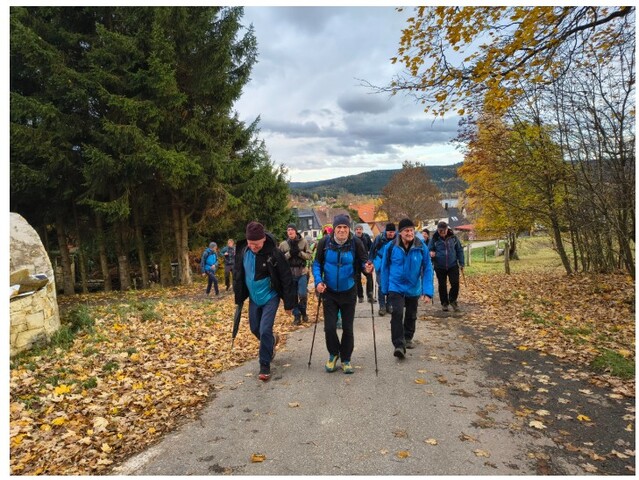 29. Direttissima der Sportunion Eidenbbergein langer Marsch nach Frymburk - Am Nationalfeiertag machten sich die sportlichen Wanderer auf den Weg nach Tschechien. Frühmorgens um 5.30 Uhr ging es flotten Schrittes los vom Ortsplatz in Eidenberg zum Bürgermeister Adi Hinterhölzl der, nach längerer Pause, heuer wieder mitmarschierte. Die Strecke führte weiter nach Berndorf, Oberneukirchen, Unterwaldschlag, Brunnwald bis zur Waldschenke am Sternstein. Die Wegstrecke von Oberneukirchen bis zur Waldschenke gestaltete sich ziemlich ungemütlich mit Regen und Wind. Nach den ersten 20 km entschied sich eine Teilnehmerin aufzuhören.