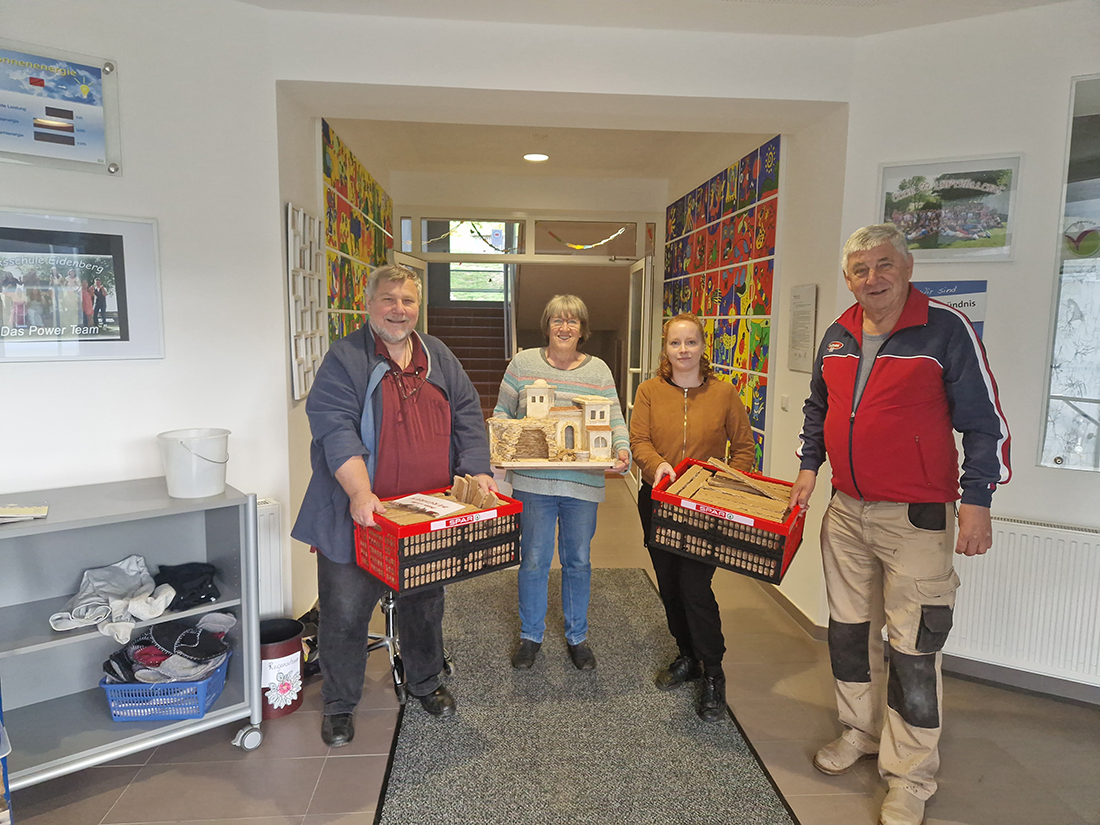 Am Montag, dem 29. September 2025, startete der Krippenbau mit den Schülern der 4. Klasse. Voll bepackt mit Grundplatten, Weichfaserplatten, Leim, Styrodur … zogen wir am Vormittag in die Schule ein, wo wir schon freudig erwartet wurden.