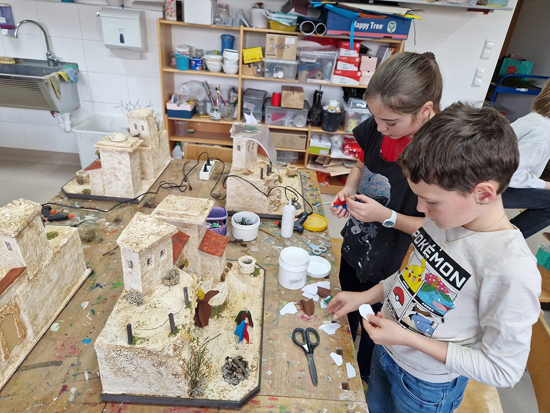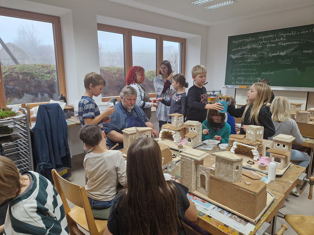 In der Volksschule Eidenberg wurde heuer ab Herbst mit den 23 Schülern der vierten Klassen im Rahmen des Werkunterrichts orientalische Krippen gebaut.
