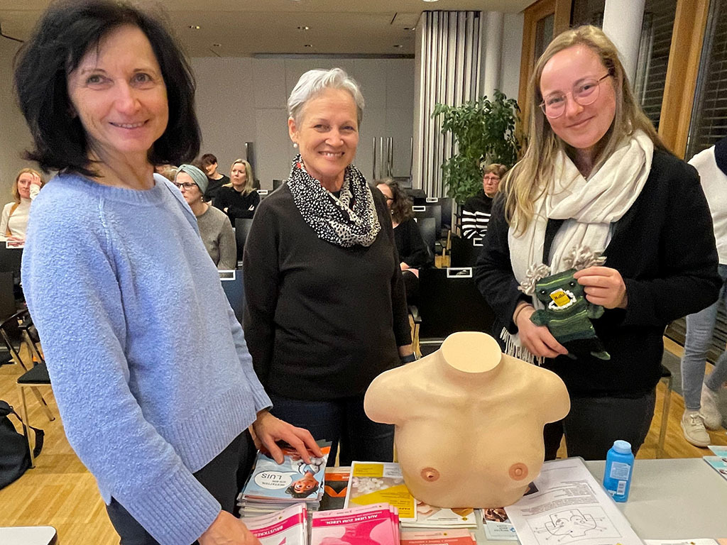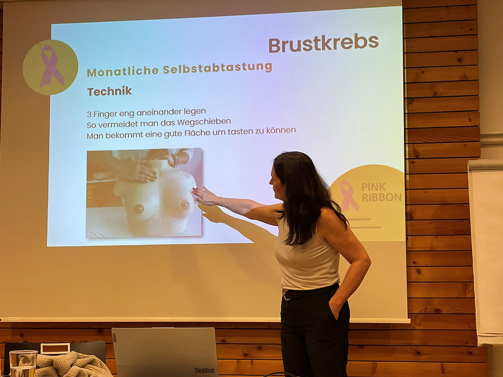Ein zentraler Bestandteil der Veranstaltung war die Brust-Selbstuntersuchung. An einem speziellen Modell konnten die Teilnehmerinnen unter fachkundiger Anleitung selbst Tastübungen durchführen und lernen, worauf bei der regelmäßigen Selbstuntersuchung zu achten ist.